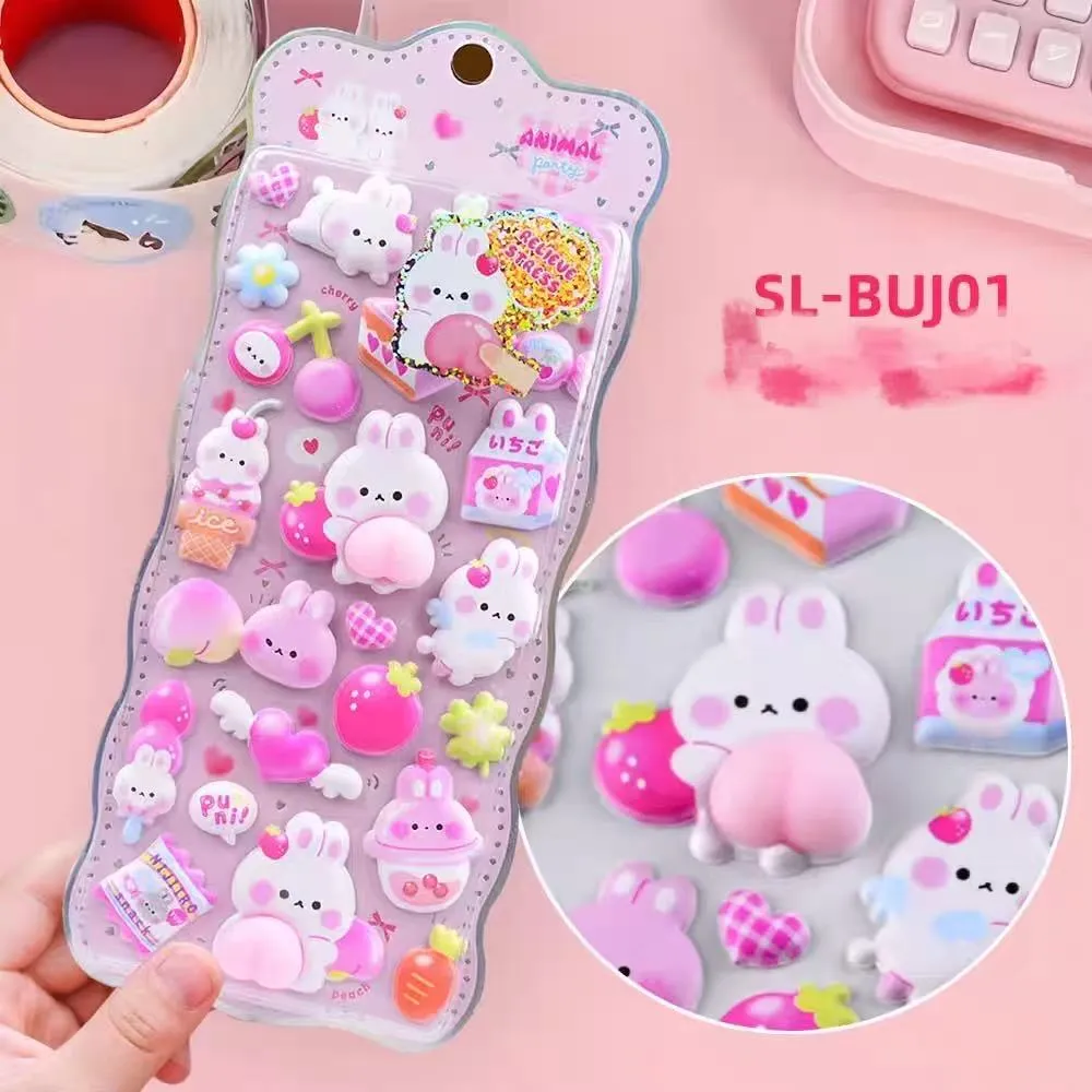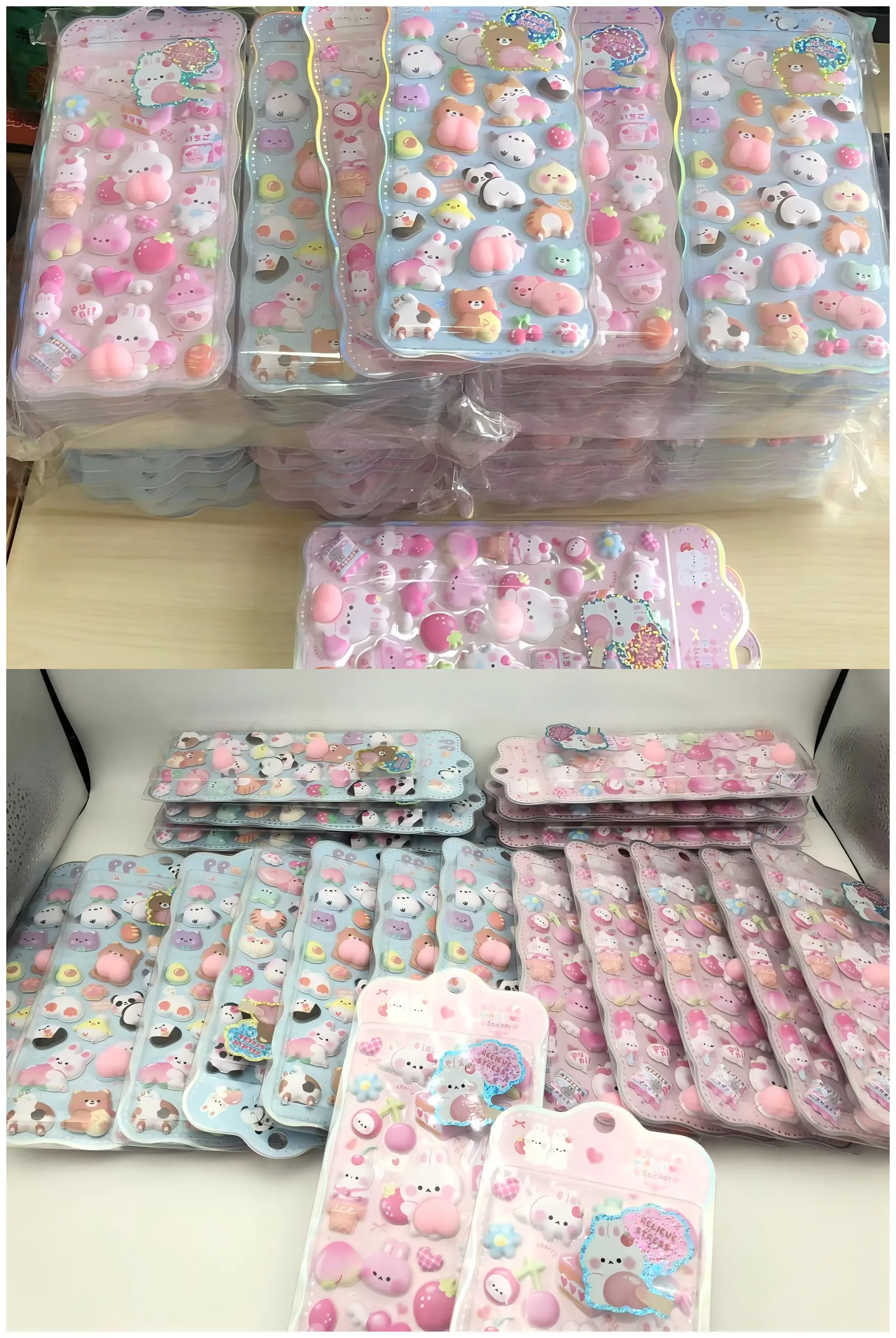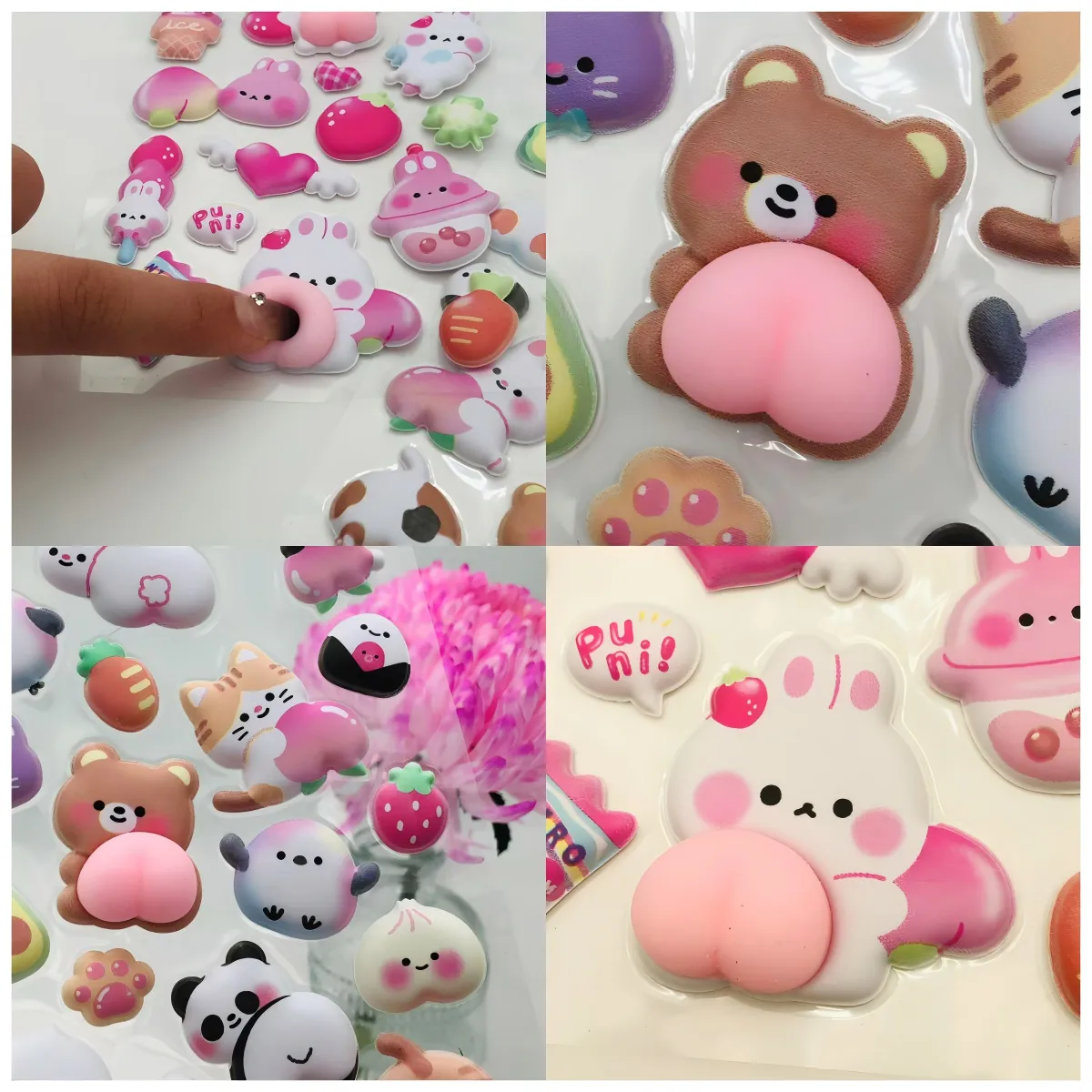 3D kreslená vlastní samolepka s nafouklým mačkaným zadečkem pro děti