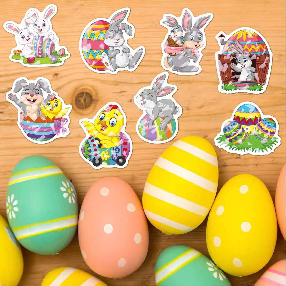 Zaměřte se na velikonoční vajíčka s kreativními vzory včetně klasických puntíků, květinových vzorů, kreslených králíků a stylů se západní estetikou. Plnobarevný tisk CMYK přináší jasné pastelové odstíny a přechody pro živý slavnostní vzhled.