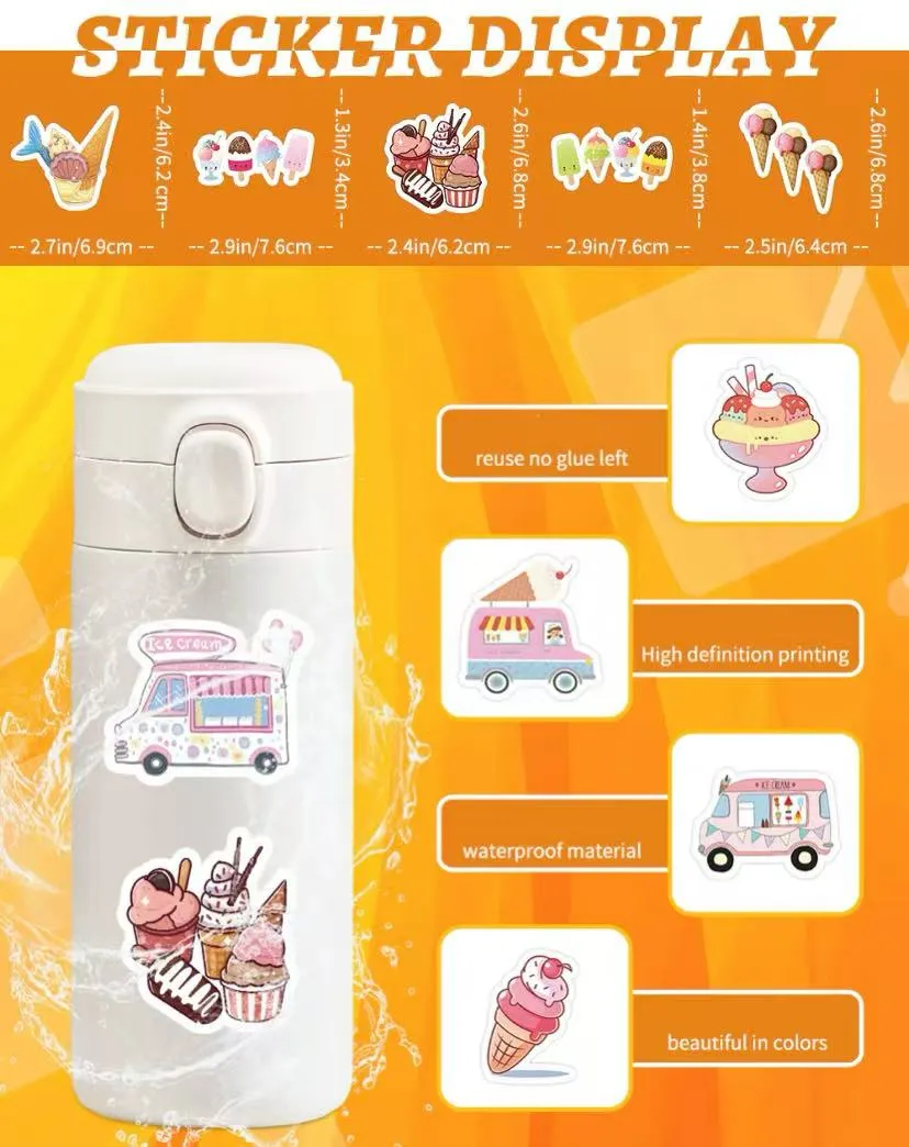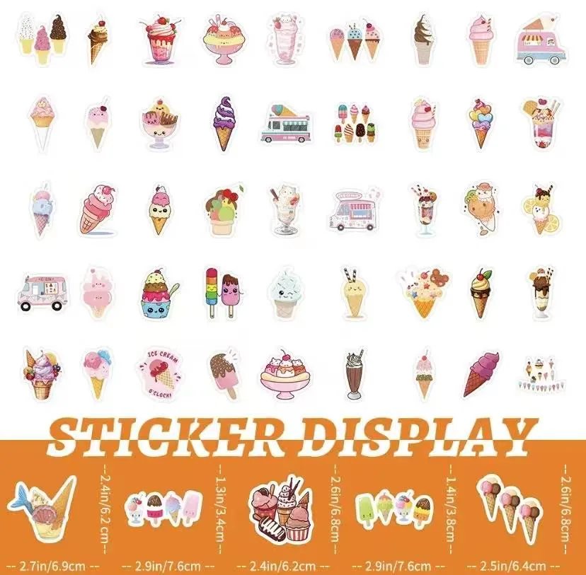 Tento produkt zahrnuje 50 nezávisle navržených nálepky na zmrzlinu bez opakujících se vzorů, které uspokojí rozmanité potřeby dekorace. Nálepky jsou vyrobeny z ekologického materiálu PVC a byly ošetřeny pro odolnost proti vodě a odolnost proti opotřebení, což je činí vhodné pro různé scénáře a po dlouhou dobu trvanlivé. Podpůrné lepidlo je vysoce kvalitního odnímatelného lepidla, které pevně ulpívá a po odstranění nezůstane žádné značky a vzory jsou vytištěny technologií s vysokým rozlišením, představují bohaté a jasné barvy, jasné detaily a snadno mizí v průběhu času.