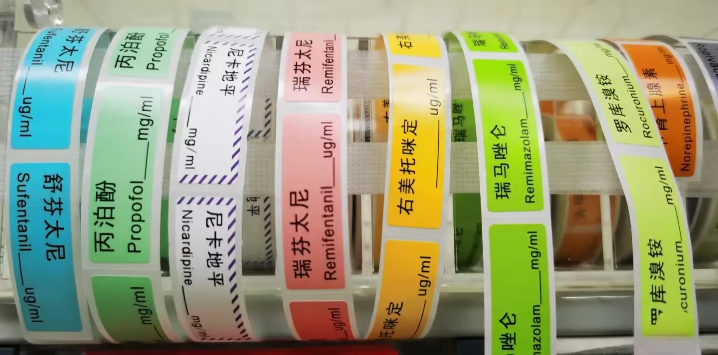 Samolepicí etikety se používají hlavně na farmaceutických obalechlékařské štítky léků, pečetní štítky a štítky na injekční stříkačky. Mezi všemi samolepícímilékové etiketyznačnou část tvoří použití samolepicích etiket na léčiva, po nichž následují samolepicí těsnící etikety. Nyní část stříkačky začala používat průhledné samolepicí štítky BOPP k identifikaci kalibrace. Farmaceutické výrobky v nálepce na láhvi obvykle zrcadlově potažený papír, potažený papír a matný papír tři typy povrchového materiálu, mají také část nevysychajícího štítku používající papírový materiál z hliníkové fólie. Podle průměru těla láhve, která má být označena, by měly být použity samolepicí etikety různých hmotností a různých materiálů čela.