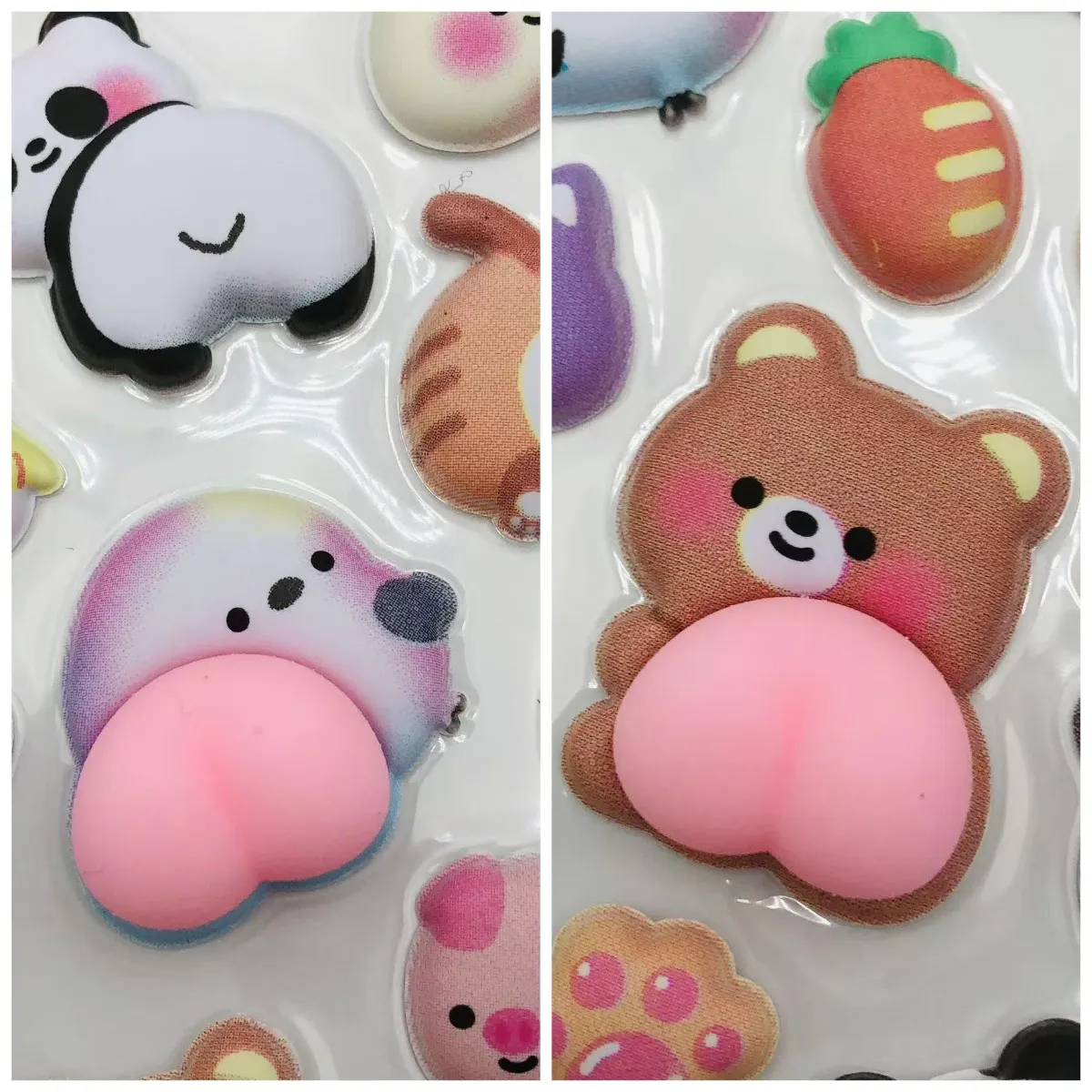 Na rozdíl od tradičních stresových hraček se tyto samolepky ve tvaru zadku dodávají s nezbytkovým lepidlem na zadní straně, což umožňuje jejich nalepení a opětovné použití jako běžné samolepky. Lze je připevnit k telefonům, počítačům, notebookům, lahvím s vodou, stolům nebo jakémukoli povrchu, který chcete ozdobit, a slouží jako hračka proti stresu a jedinečné vyjádření osobnosti.