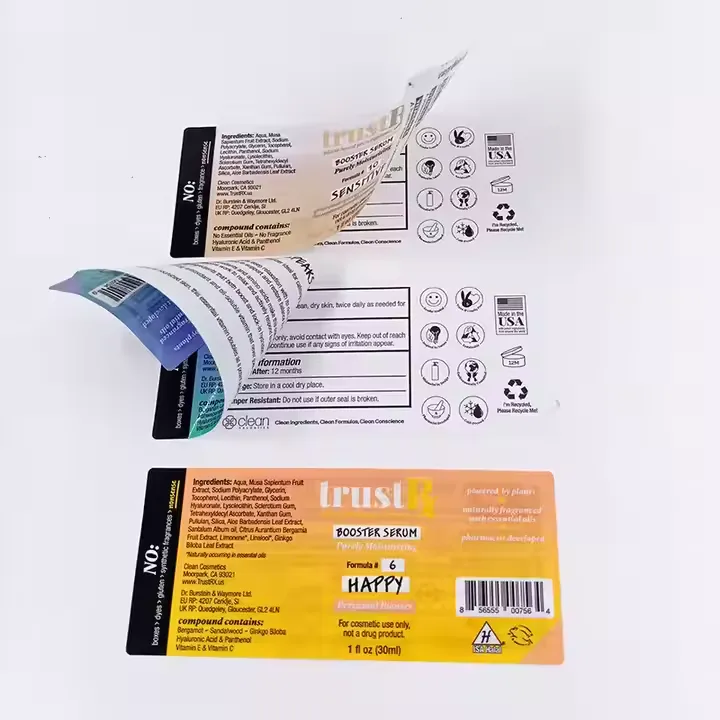 1. Kompozitní štítky Multi-vrstvy: Jsou z vícevrstvého typu. Vrstvy jsou překrývány a kombinovány mezi sebou. Vzhled vypadá podobně jako běžné samolepiční štítky, ale štítky mohou být opakovaně odtrženy a znovu se znovu objevují vrstvou vrstvou, což umožňuje prohlížet si vytištěný obsah uvnitř štítků atd.