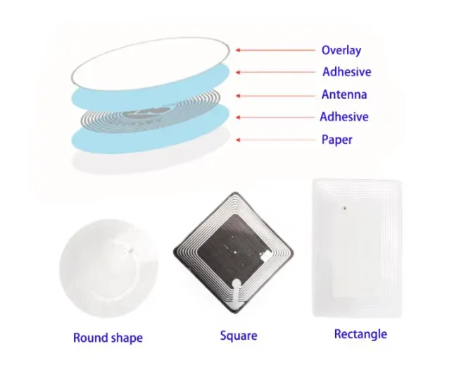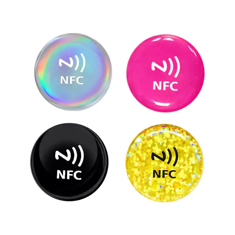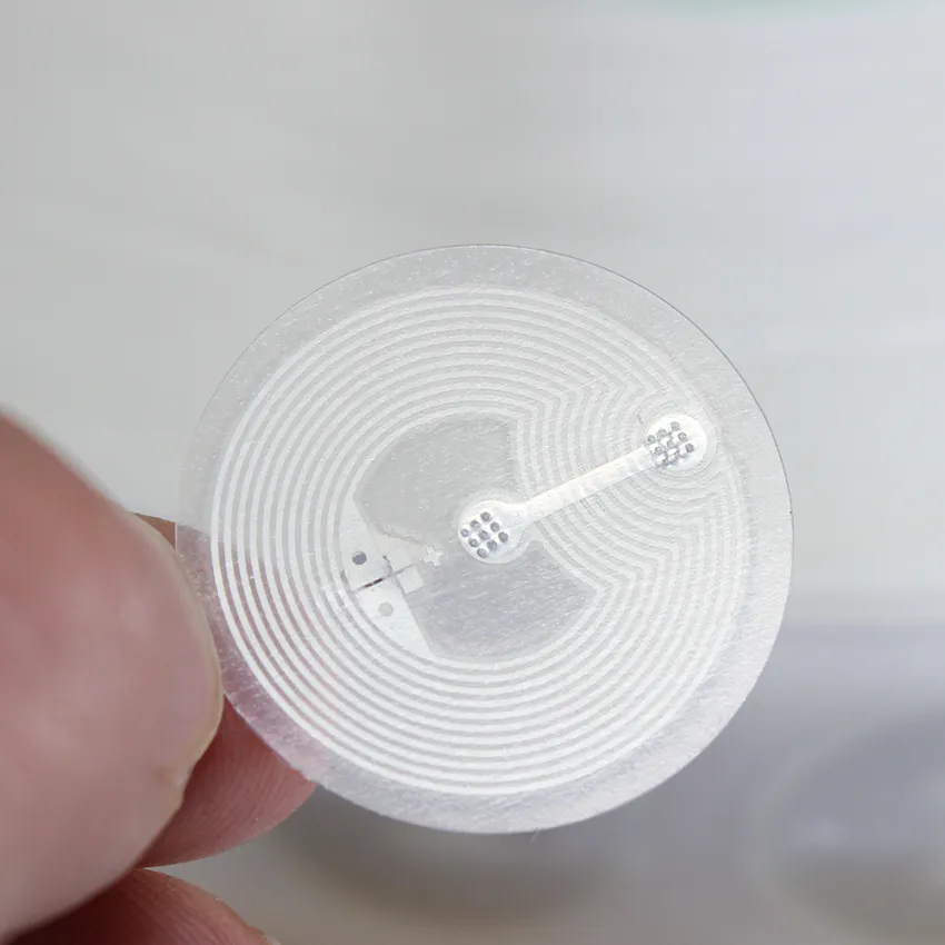 Velikost a forma: NFC nálepky jsou malé. Často jsou kulaté a o velikosti mince. Jedna strana má lepidlo, takže je můžete snadno nalepit na věci, jako jsou plakáty, náramky nebo vizitky.