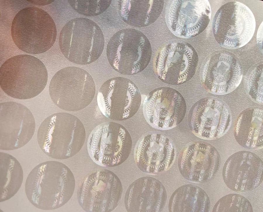 Holografický vzor přenosu horkého lisu: Otiskovací zařízení s kovovou šablonou je předehřát na konkrétní teplotu a podrobeno přesně kontrolovanému tlaku. Následně je vinylový materiál s již vytištěným běžným vzorem úzce dodržován kovové šabloně. Tento proces nejen zajišťuje, že holografický vzorec je pevně připojen k štítku, ale také zaručuje perfektní prezentaci podrobností a trojrozměrnosti. Z různých úhlů může vykazovat jedinečný brilantní efekt jako duha.